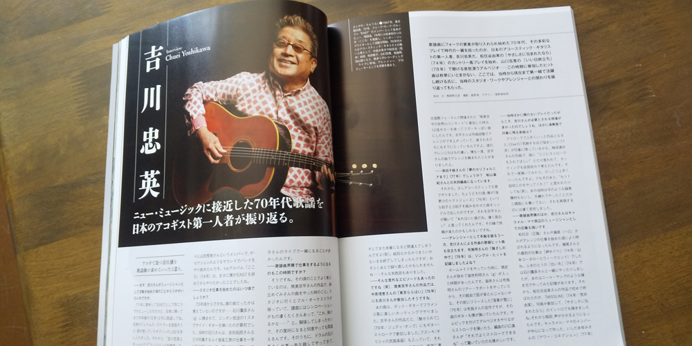 ネットで検索していたらリットーミュージックから出されている「ギターマガジン」の5月号にインタビュー記事が掲載されていることがわかり早速買いに出かけた。70年代、80年代の歌謡曲特集でギターマガジンだから譜例とかもエレキギター・ロックギターの視点から見た内容が多いが、当時のアコギにおけるスタジオワークの第一人者我らが吉川忠英師匠が当時の業界の様子とか関わった作品とかインタビューに答えている。まだまだその健在ぶりが見て取れる。